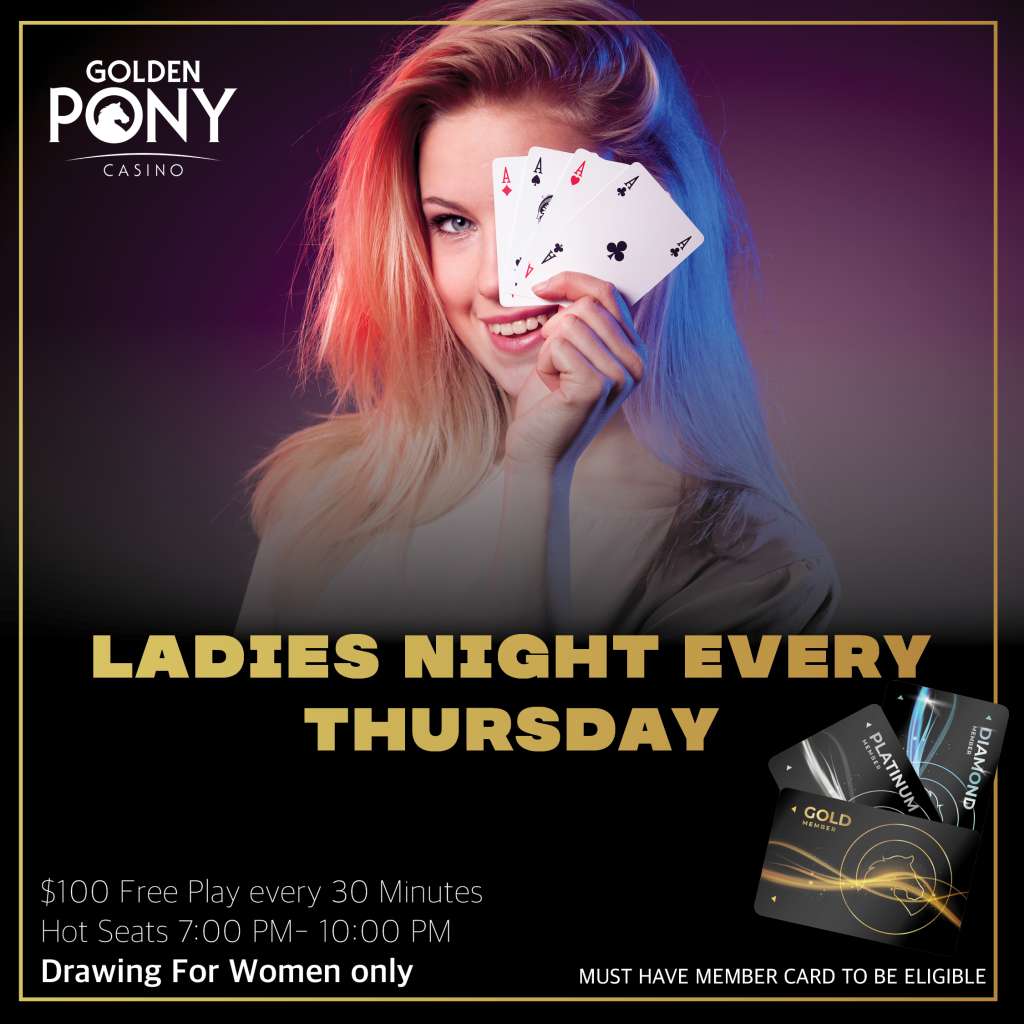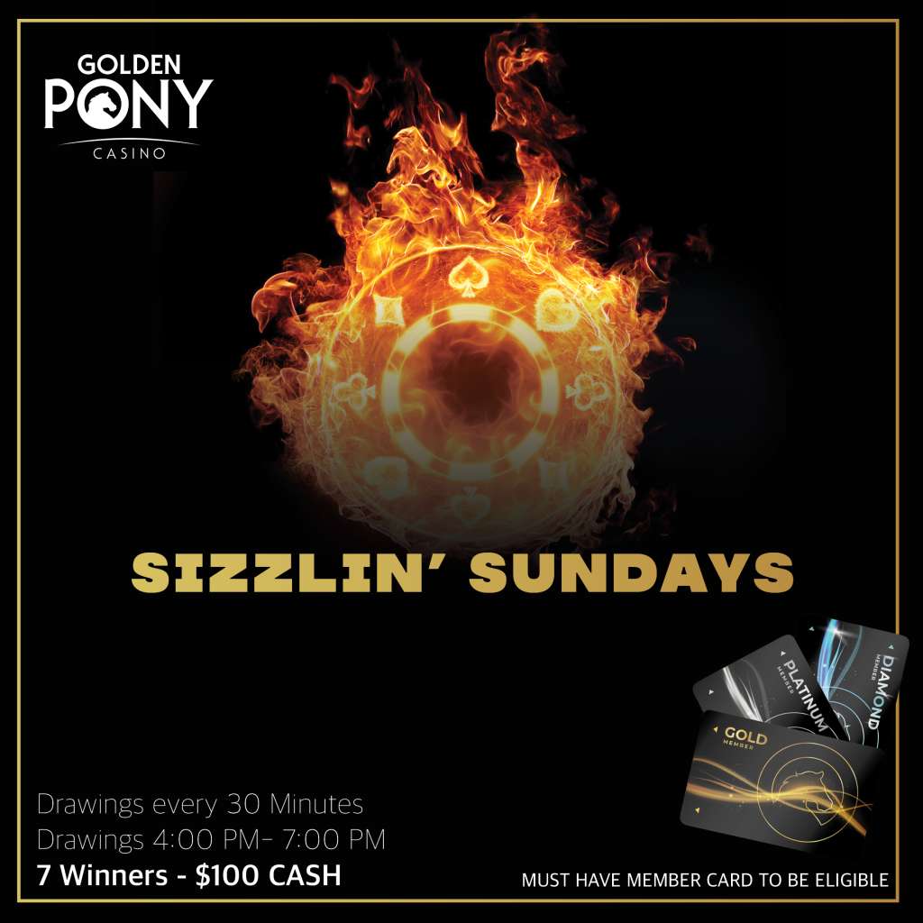 JOIN OUR GOLD CLUB Okemahs Number One Destination SIGN UP Welcome to Golden Pony Casino FEATURED PROMOTIONS Happy St. Patricks Day from the Golden Pony Casino Drawings every 30 MinutesDrawings 4:00 PM- 7:00 PM7 Winners – $100 CASH Click here $100 Free Play every 30 MinutesHot Seats 7:00 PM- 10:00 PMDrawing For Women only Click here $200 CASH every 30 Minutes 7 Hot Seat Drawings 6:00 PM – 9:00 PMMust have member card to be eligible. Click here Sign up Today for Gold Meber Card Play the games you love while earning exclusive benefits and rewards – it’s your ticket to more points, better perks, and faster rewards. Join the Golden Pony GOLD CLUB Â The rewards never end!New members receive $15 FREE PLAY just for signing up!Visit the Player’s Club to receive your new card TODAY! Learn More